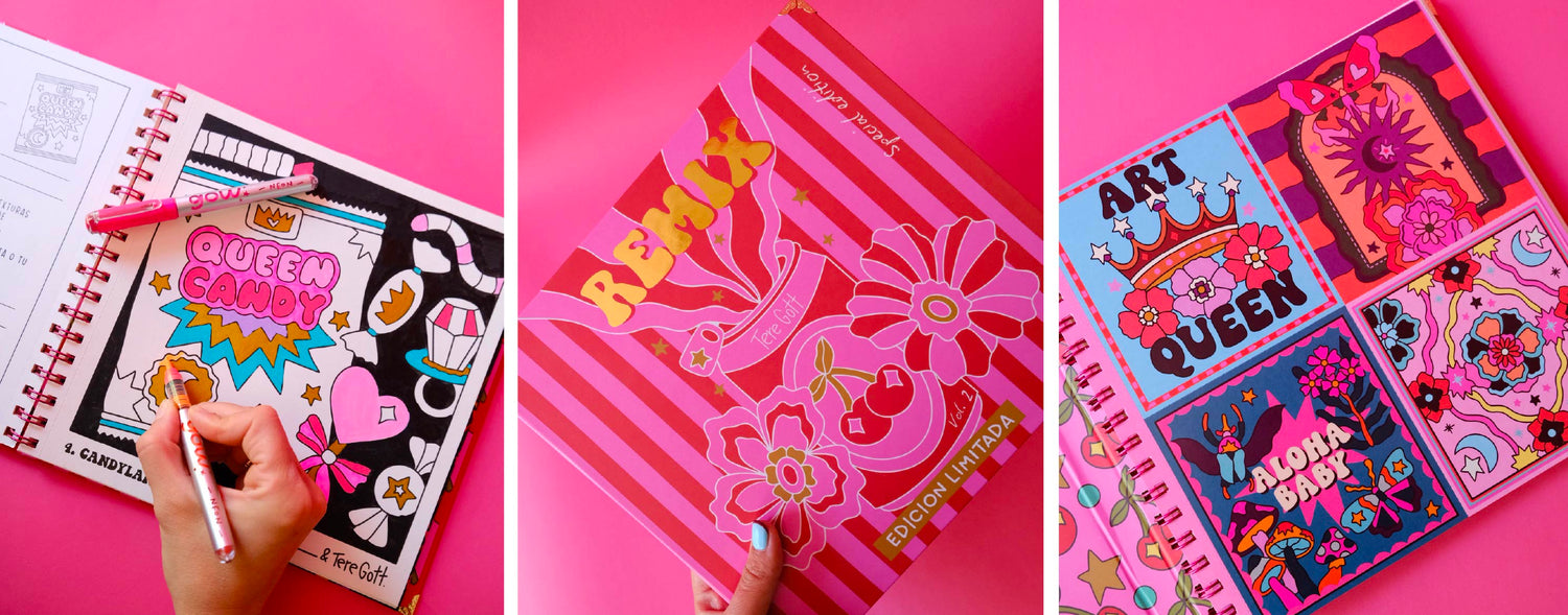 Este libro incluye +100 stickers full color y +100 stickers para colorear, todos en adhesivo de papel para que puedas intervenirlos con tus marcadores favoritos.