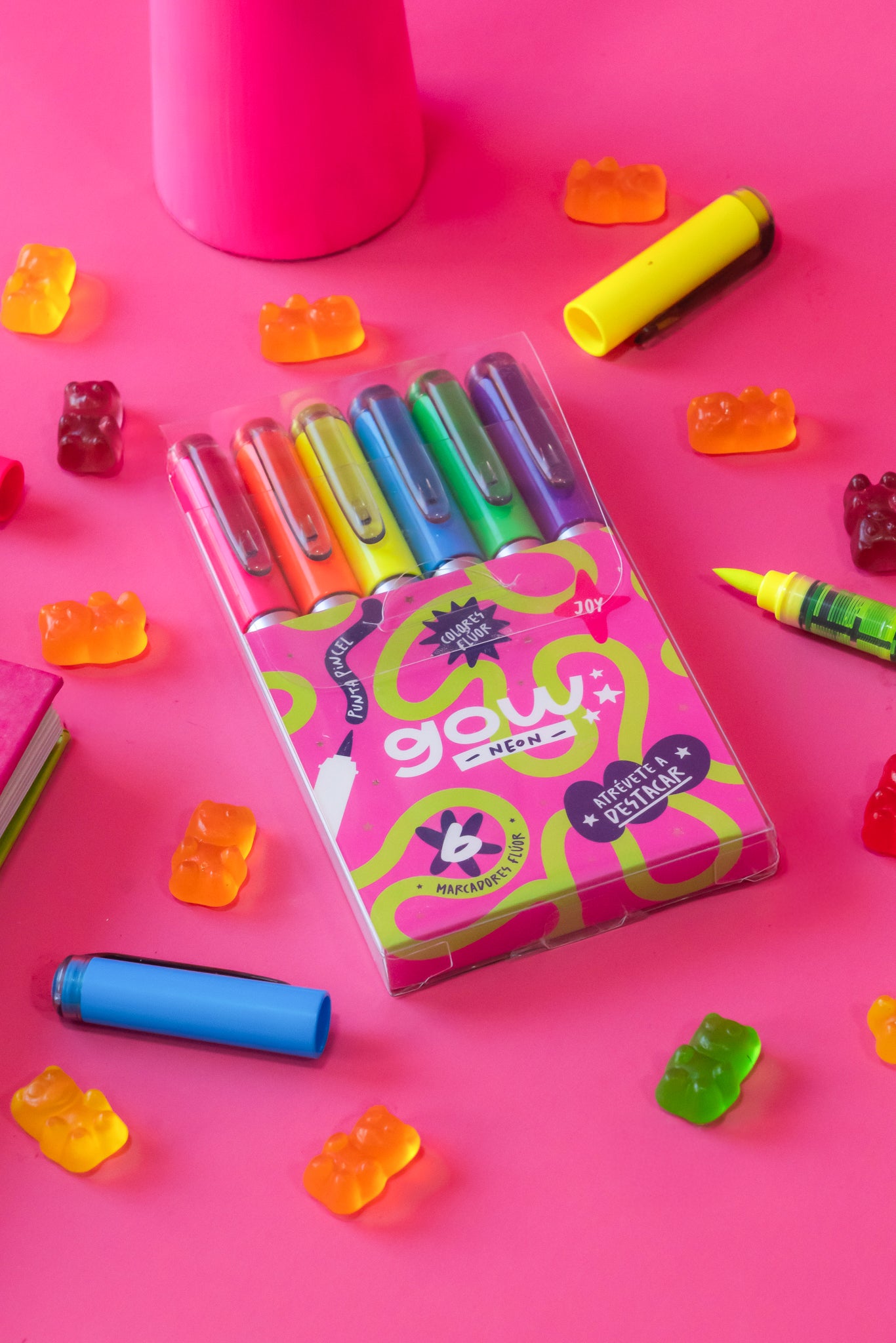 Este set tiene 6 marcadores de colores neón súper intensos que hacen que todo destaque!